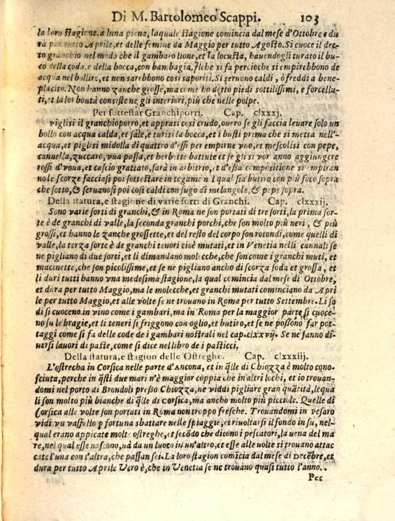Nel 1570, con la benedizione papale e tutti i privilegi che essa comportava, viene pubblicata l' "Opera di Bartolomeo Scappi, maestro dell'arte di cucinare, cuoco secreto di Papa Pio Quinto, divisa in cinque libri" (Ai primi cinque libri verrà aggiunto un sesto sulla cucina per gli infermi e convalescenti).