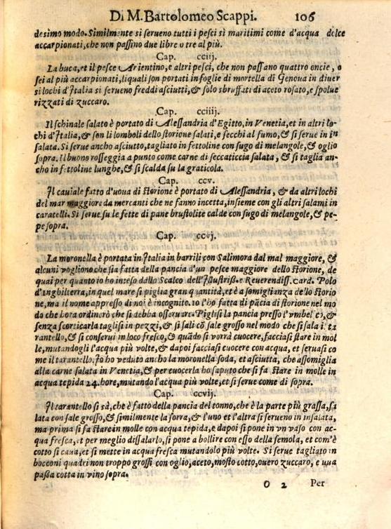 Bisogna adunque che un prudente e sufficiente m. Cuoco, per quanto dalla lunga esperienza in molto tempo io ho compreso, volendo avere buon principio, miglior mezzo e ottimo fine, e sempre onore della sua opera, faccia come un giudizioso Architetto. Il quale dopo il suo giusto disegno, stabilisce un forte fondamento, e sopra quello dona al mondo utili e meravigliosi edifici; il disegno del Cuoco ha da essere il bello e sicuro ordine, causato dall'esperienze |
